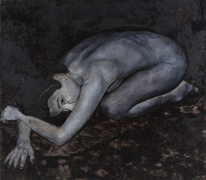 The artist investigates the relationship among paiting, photograph and cinema. Ozbakir tries to give the impression of sorrow which belongs to humans in a context covered by miscommunication, loneliness and unhappiness in his paintings.